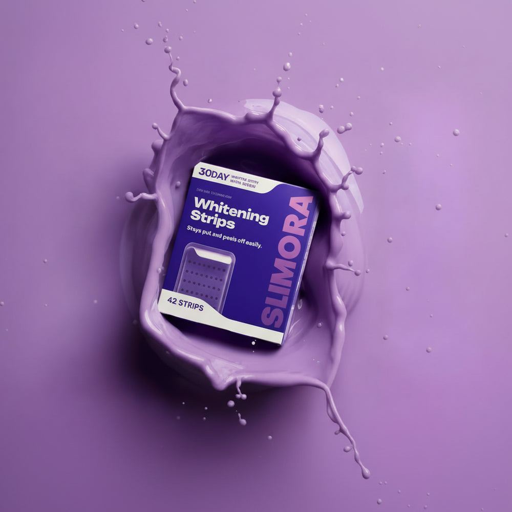 Meet SLIMORA™️ - Purple Teeth Whitening Strips the fastest way to a visibly whiter smile.